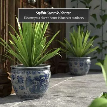 Red Lantern 14" Ladies Blue & White Porcelain Fishbowl