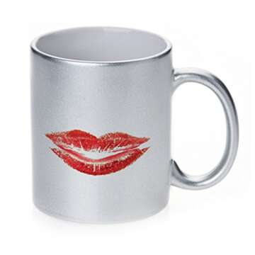 Red Lipstick Silver Sparkle Coffee Cup Mug