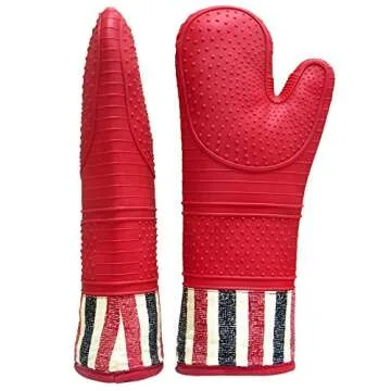 RED LMLDETA Heat Resistant 550 Degree Oven mitt, Silicone Oven Hot Mitts - 1 Pair, Extra Long Professional Baking Oven Gloves - Food Safe,Pot Holders Cooking,Grilling,Kitchen (red Mittens)