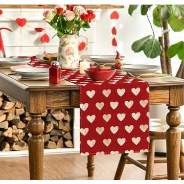 Red Love Heart Valentine's Day Table Runner, Seasonal Anniversary Kitchen Dining Table Decoration for Indoor Home Party 13x108 Inch