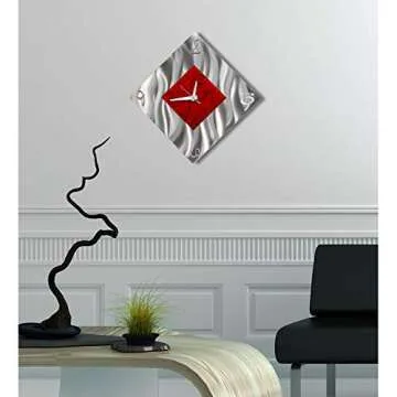 Red Metal Decorative Wall Clock, Abstract Modern Clock for Living Room or Kitchen, Jon Allen Metal Art, Fresh Start Clock