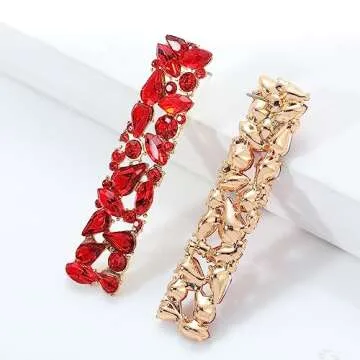 Red Rhinestone Long Drop Dangle Earrings Trendy Crystal Geometric Statement Earrings for Women Evening Cocktail Party Prom