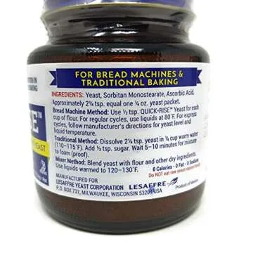 Our quick-rise format allows for faster fermentation times which means you can enjoy freshly baked bread in a snap! Ideal for all types of bread, rolls, and other baked goods, this yeast also comes in a convenient jar that keeps it fresh and easy to store. Say goodbye to traditional waiting times and hello to a faster, more enjoyable baking experience!