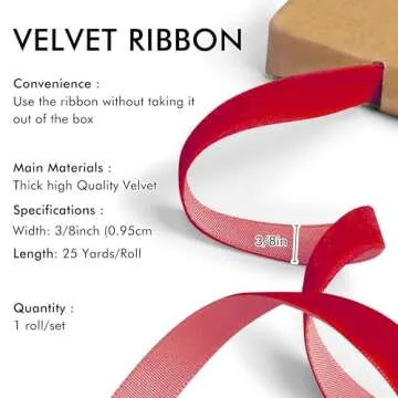 Red Velvet Ribbon 3/8'' 25 Yards for Christmas Tree, Gift Wrapping, Flower Bouquet, Wreath Decorations, Bow Making