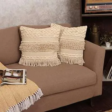 REDEARTH · Tufted Throw Pillow Cushion Covers - Boho Textured Woven Decorative Cases Set for Couch - Sofa - Bed - Farmhouse - Chair - Patio - Outdoor - car - 100% Cotton (18x18 ; Natural) Pack of 2