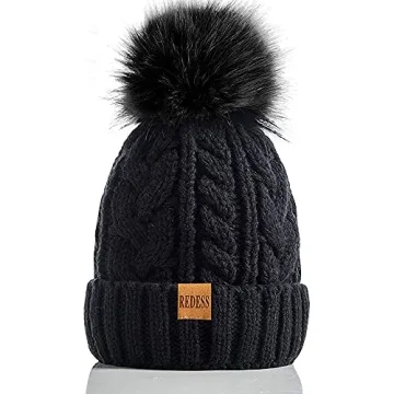 REDESS Women Winter Pompom Beanie - Warm Fleece Lined Ski Cap