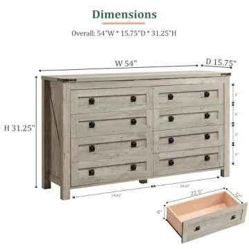 RedLemon Farmhouse 8-Drawer Dresser - Rustic Wood Storage Solution for Any Room