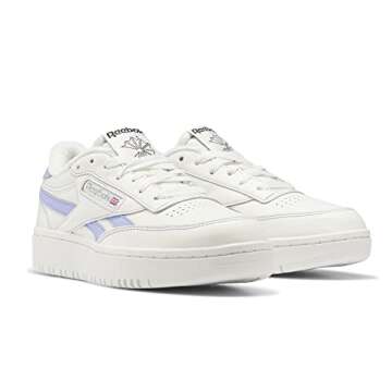 Show moreStep into a world of comfort and style with the Reebok Women's Club C Double Revenge Sneaker. Perfectly blending fashion and functionality, these sneakers are designed for the modern woman who values both aesthetics and performance. With a classic yet trendy look inspired by tennis all-stars, the chalk-white leather upper not only offers a sleek finish but also provides considerable support for your every stride. The stacked midsole translates to extra height and a chunky silhouette, allowing you to turn heads, whether on the court or out on the town. Each pair promises durability, ensuring that you can sport them daily without worrying about wear and tear.