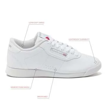 Why You Will Love This Product?The Reebok Women's Princess Sneaker redefines what it means to wear comfortable shoes. You will appreciate the blend of style and comfort as these sneakers elevate your outfit while providing the essential support needed for an active lifestyle. Experience the joy of slipping into shoes that not only look good but also feel amazing with every step. Whether you're commuting to work, enjoying a jog, or casually strolling around town, these sneakers will quickly become an integral part of your footwear collection.