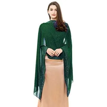 Show moreIntroducing the exquisite REEMONDE Women’s Rhinestones Pashmina Shawl, a dazzling addition to elevate your evening wardrobe! Crafted from smooth and breathable 75D chiffon, this luxurious shawl promises a lightweight and comfortable wear that gracefully drapes over your shoulders. Its stunning dark green hue, enhanced with sparkly rhinestones, adds an elegant touch that is perfect for any formal occasion. Measuring an impressive 80 inches in length and 27.5 inches in width, and weighing only 190 grams, this versatile wrap offers a combination of style and practicality, making it an essential accessory for the modern woman.