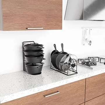 REEQMONT 2 Pack - Heavy Duty Pot Rack Organizer, 5 Tier Pan Rack Holder, Holds Cast Iron Skillets, Dutch Oven, Frying Pan, Griddles - No Assembly Required, 15.9'' H
