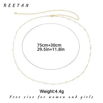 Show moreEnhance your summer style with this stunning Gold Waist Chain, crafted from high-quality alloy and adorned with elegant pearls. This beautiful accessory is designed to impress and is perfect for women and girls looking to elevate their outfits. With its excellent color retention, you can wear this stunning piece without worrying about fading, ensuring your glam look lasts. The boho pearl chain features an extended design, allowing you the freedom to adjust the length to suit your unique body shape. Whether you’re flaunting your figure at a beach party or pairing it with a trendy outfit for a night out, this versatile body chain will give you that feminine and charming appeal you desire.