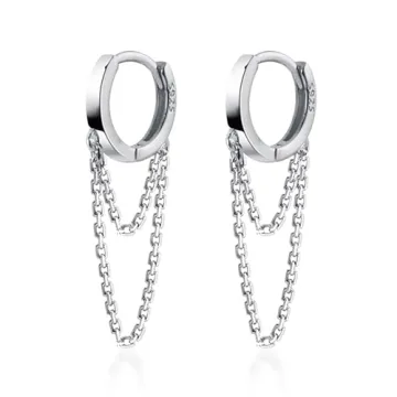 Show moreDiscover the exquisite charm of these stunning chain dangle hoop earrings by Reffeer Jewelry, crafted from high-quality S925 sterling silver. Unlike many other earrings on the market, every aspect of these pieces, from the posts to the hoop itself, is made from genuine sterling silver, ensuring that even those with sensitive ears can enjoy wearing them without allergy concerns. The earrings boast a total length of '28mm' and a hoop diameter of '12mm', weighing in at a feather-light '1.76g' per pair, making them comfortable for all-day wear.