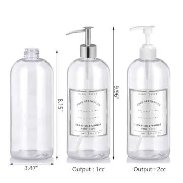 Each bottle is equipped with a **standard 28mm steel pump**, which boasts both luxury and functionality. With thousands of presses confirmed, you're guaranteed a reliable dispensing experience every time. The bottles come with two pumps, making it an excellent value set designed for convenience and versatility. Additionally, each package includes labeled stickers and a **free food-grade silicone funnel**, which features a wide mouth, making refills hassle-free and preventing any spills.