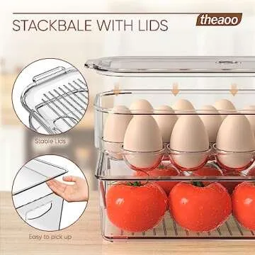 Show moreIntroducing our Refrigerator Organizer Bins - 8 Pack, a perfect solution for elevating the functionality and aesthetic of your kitchen! These stackable storage bins are designed with your needs in mind, offering a transparent plastic construction that allows for easy visibility of contents while maximizing space utilization. With each bin featuring a lid, your food items remain fresh and secure, making it a breeze to organize everything in your refrigerator or pantry. Whether you're a kitchen novice or a seasoned chef, this set is an essential addition to your home, making food preparation and storage seamless and efficient.