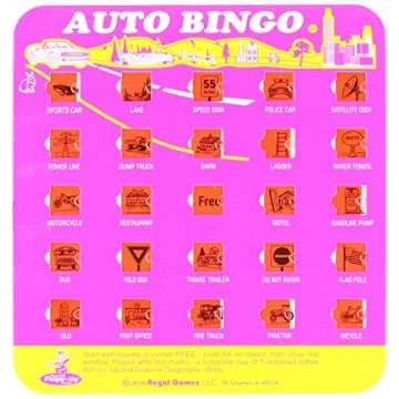 Show moreGet ready for a game-changing travel companion with the Regal Games The Original Travel Bingo Game Card. Perfect for long road trips and family vacations, this classic bingo game is designed to keep little minds engaged and entertained while on the go. With vibrant colors and various bingo categories, including Green and Pink Standard Auto Bingo, Blue License Plate Bingo, and Orange Interstate Highway Bingo, your children can enjoy hours of fun spotting items and checking them off their cards. Rediscover the art of interactive family bonding while traveling with this essential travel accessory!