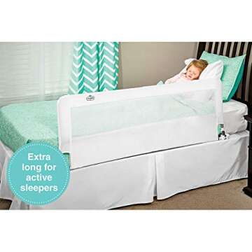 Measuring an impressive 54 inches long at its hinge point and standing 20 inches tall, this bed rail provides stability and security for your little ones as they transition from crib to bed. Whether your child is restless during the night or enjoys jumping around, the HideAway rail ensures peace of mind for parents and guardians alike. Plus, with an easy tool-free setup, you can secure it to the bed in minutes!