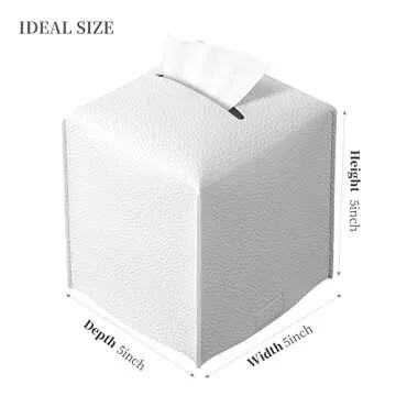 Show moreElevate your space with the REGELETO Off-White Tissue Box Cover, a perfect blend of function and style. Crafted from high-quality PU leather, this square tissue box holder is designed to bring an air of elegance to any setting. With its dimensions of 5"x5"x5", it not only accommodates most standard tissue boxes but also seamlessly integrates into your home's decor. The stylish off-white color adds a modern touch, making it an ideal accessory for your coffee table, nightstand, or desk.