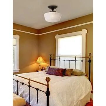 Show moreIntroducing the Regency Hill Floating Rustic Farmhouse Ceiling Light, a stunning semi-flush mount ceiling fixture that merges timeless elegance with modern functionality. Perfectly sized at 12 inches wide and 10 1/4 inches high, this exquisite light features a charming opal white glass shade that beautifully diffuses the light, creating a soft and warm glow in any space. The rich bronze finish enhances its vintage allure, making it an ideal fit for a variety of decors from contemporary kitchens to classic dining rooms.
