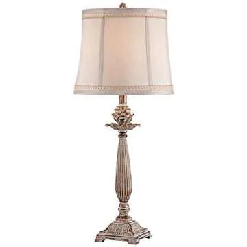Regency Hill Shabby Chic French Country Cottage Table Lamp 28" Tall Antique White Washed Petite Artichoke Font Beige Fabric Bell Shade for Living Room Bedroom House Bedside Nightstand Home