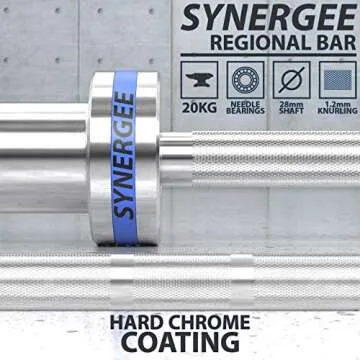The affordability and functionality of the Synergee Olympic Barbell make it a top choice for athletes across different fitness domains. We made this bar versatile by incorporating two knurl marks for power and Olympic lifts, catering to varied workout styles. Plus, it comes with a striking blue Synergee silicon ring that adds a pop of color while securing everything in place.
