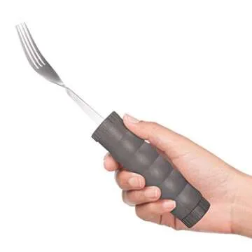What sets this fork apart is its remarkable adaptive functionality; the weighted handle can be precisely adjusted from 2 to 8 ounces. This feature allows users to customize the utensil's weight according to their specific needs, aiding those with limited hand mobility. The easy addition or removal of washers makes this adjustment simple, ensuring the fork caters uniquely to each user. Additionally, the metal shaft of the fork can be effortlessly bent to the left or right, allowing for a personalized angle that facilitates easier dining experiences without straining the hands.