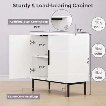 Crafted from quality engineered wood and supported by sturdy steel legs, the REHOOPEX cabinet is built to last. An elevated metal base prevents moisture damage, making it suitable for diverse areas in your home. Plus, the included anti-toppling design reassures safety by allowing you to secure the cabinet to the wall, ensuring peace of mind in any household, especially those with children or pets.