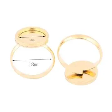 Reidgaller 10pcs Stainless Steel Gold Plated Adjustable Round 12mm Cabochon Ring Base Blank DIY Bezel Setting Trays for Jewelry Making
