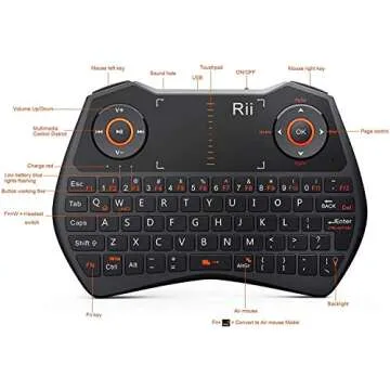 reiie Rii i28 5 in 1 Wireless Mini Keyboard/Touchpad/Flying Mouse/Earphone Jack/Backlit Work for PC,Raspberry Pi 2 3, Android TV Box,XBMC,Windows 7 8 10