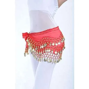 Show moreIntroducing the REINDEAR Vogue Style Chiffon Dangling Gold Coins Belly Dance Hip Scarf in vibrant red, a stunning accessory designed for the modern dancer! This exquisite scarf, measuring 60 inches (150cm), easily accommodates slim waists up to 31.5 inches (80cm), ensuring a comfortable fit for everyone. Crafted from high-quality chiffon, the fabric is not only lightweight but drapes beautifully, allowing for graceful movement and precision during your performances.