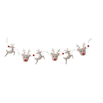 Chambray reindeer and pom-pom garland on jute rope Size: 60" Material: Cotton