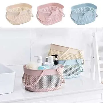 Show more This Multipurpose Shower Basket is the ultimate solution to all your storage needs! Constructed from BPA-free materials, this sturdy yet flexible plastic caddy is built to withstand the demands of everyday use without breaking or deforming. Its perfect size, measuring 10.5 inches in diameter and 7.6 inches in width, enables it to fit snugly in closets, storage cubes, or on shelves, making it ideal for small spaces. The stylish design pairs functionality with aesthetics, appealing to anyone looking to organize their space with a touch of flair.