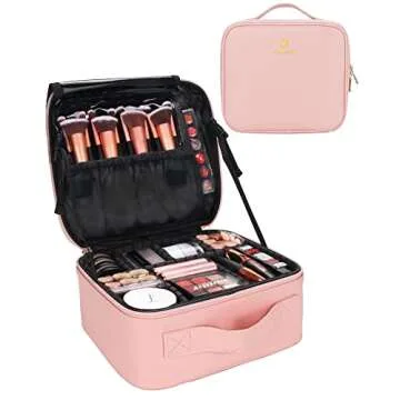 Introducing the Relavel Makeup Bag Organizer: The ultimate solution for every makeup enthusiast and professional artist! Designed with high-quality leather fabric and a durable nylon lining, this stylish makeup bag not only turns heads with its elegant pink color but also stands the test of time against wear and tear. Say goodbye to messy makeup drawers and hello to organized perfection! This makeup bag is thoughtfully created to facilitate all your cosmetic storage needs while being portable...