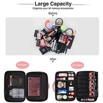 Relavel Makeup Bag Travel Makeup Train Case 13.8 inches Large Cosmetic Case Professional Portable Makeup Brush Holder Organizer and Storage with Adjustable Dividers and Shoulder Strap (Pink)