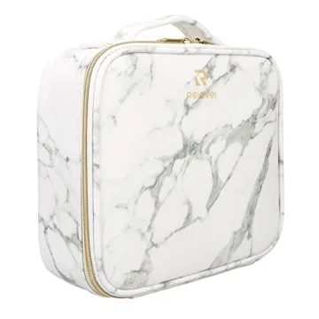 Show more Introducing the Relavel Marble Makeup Bag Large Organizer, your ultimate solution for beauty enthusiasts and professionals alike seeking both functionality and style. Crafted from high-quality PU leather, with a nylon lining and a durable golden metal zipper, this travel train case features an elegant marble design that is sure to stand out. With plenty of storage space, it accommodates everything from lipsticks and eyeshadows to makeup brushes and skincare products, making it an indispensable accessory for both daily use and travel.