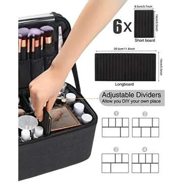 Relavel Travel Makeup Bag, Makeup Case Organizers Large Cosmetic Bags Makeup Brush Holder, Keep Cosmetic Up Right, Perfect for Taller Liquids, Portable Adjustable Strap, Waterproof Fabric