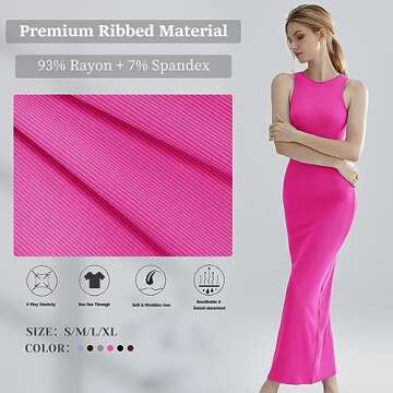 Relety Women's Elegant Bodycon Maxi Dress - Ribbed Lounge Tank Dress in Rose Pink