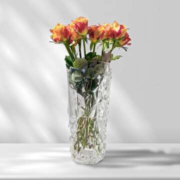 Relexome Glass Flower Vase 11.8'' Tall Large Crystal Vase for Centerpieces Flowers Home Decor, Heavy Duty Clear Glass Vases for Bouquet Table Wedding Unique Modern Decorative Vase Wide Mouth