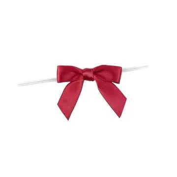 Introducing the stunning and elegant Satin Twist Tie Bows in a vibrant scarlet color, perfect for any gifting occasion. Crafted with meticulous attention to detail, these luxurious bows feature a woven edge and a single face satin finish, creating a sophisticated addition to your presents. Measuring 2-1/2 inches, these bows are complemented by a sturdy 5-inch twist tie, making them ideal for securing small packages effortlessly.