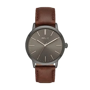Show moreDiscover sophistication and practicality with the men's Relic by Fossil leather watch, a timeless addition to your accessory collection that effortlessly blends style and functionality. This watch features a sleek 40mm round case crafted from durable alloy metal, ensuring it holds up against daily wear while presenting a polished look. The striking gunmetal gray dial is enhanced by silver accents, seamlessly combining elegance with modernity. Its accurate Quartz movement guarantees precise timekeeping, so you’ll never miss a moment.
