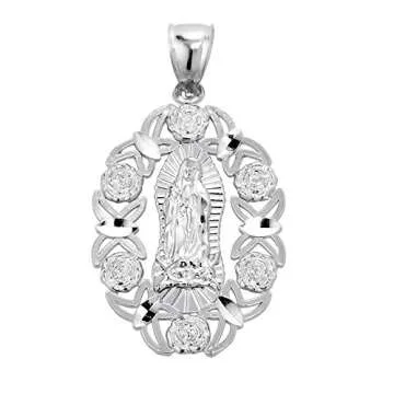 Religious Jewelry Blessed Our Lady of Guadalupe Miraculous Medal Charm Necklace in 925 Sterling Silver, 18"