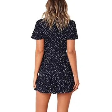 Relipop Summer Women Short Sleeve Print Dress V Neck Casual Short Dresses Navy Blue