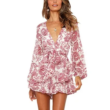 Show more Introducing the stunning Relipop Women's Romper! This casual summer romper is a must-have addition to your warm-weather wardrobe, designed to make you feel fabulous. With its deep v-neck and baggy sleeves, this romper combines comfort with effortless elegance, perfect for a variety of occasions. The waist tie creates a flattering silhouette, cinching your waist while the layered ruffle hem adds a playful touch. Made from high-quality polyester, it boasts lightweight, breathable properties ensuring you stay cool and comfortable all day long. Available in a beautiful floral print, this romper will quickly become a favorite for your summer adventures.
