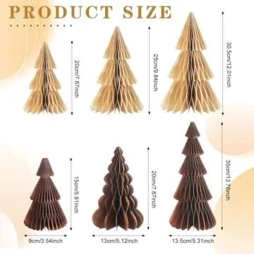 Show moreTransform your home into a festive wonderland with our ReliThick 6 Pcs Paper Christmas Tree Decor. These charming 3D honeycomb trees are designed to bring a touch of elegance and uniqueness to your holiday celebrations. Crafted from high-quality materials, these trees are perfect for adorning your mantel, dining table, or any other festive space within your home. With a set of six trees in varying heights, they are thoughtfully designed to meet all your decoration needs.