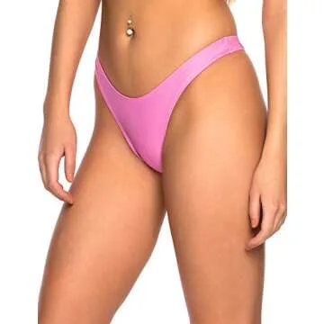RELLECIGA Women's High Cut Thong Bikini Bottom (Large, Fuchsia)