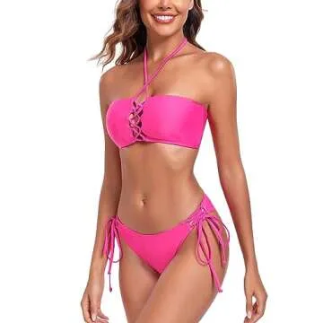 Introducing the RELLECIGA Women’s Hot Pink Criss-Cross Bandeau Bikini Set, where retro meets functionality in a stunning two-piece bathing suit. This vibrant bikini combines classic design elements with modern chic, ensuring you stand out at the beach, pool, or any summer gathering. Featuring a stylish bandeau top with adjustable halter straps, this bikini allows for a customizable fit tailored precisely to your body shape. No underwire and light removable padding provide both comfort and...