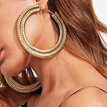 RELOVET Extra Large Chunky Cuban Hoop Earrings Geometric Double Layered Round Loop Boho Earrings for Women Prom Party Festival Jewelry (80mm gold)