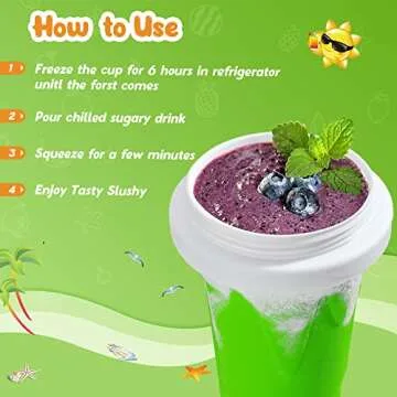 Show more Transform ordinary beverages into delightful frozen treats with the amazing Frozen Magic Slushy Maker! This innovative product utilizes Instant Freeze Technology that allows you to enjoy your favorite sugary drinks instantly as slushies. Simply freeze the slushy maker for 4-5 hours, pour in any drink of your choice, and within minutes, you'll have a delicious, icy slush ready to enjoy! No need to worry about dilution of flavor, as this product uses an ingenious method that doesn’t involve muddling ice with juice.