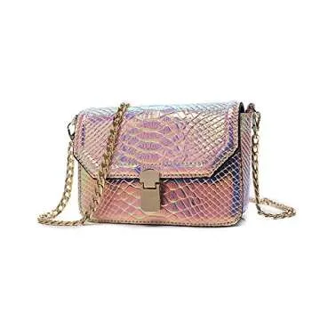 RemeeHi Hologram Snake Skin Leather Shoulder Bag Crossbody Bag with Chain (Hologram Red)