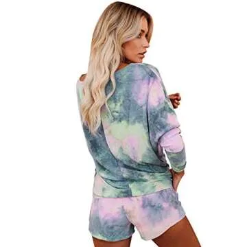 Remelon Womens Tie Dye Lounge Set Long Sleeve 2 Piece Shorts Set Outfits Sports Sweatsuits